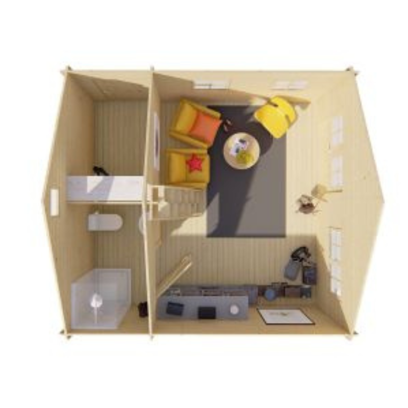 - Geleverd inclusief opbouwbeschrijving, fundering en houten vloer