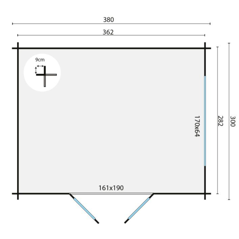 - Buitenmaat: 380×300 cm