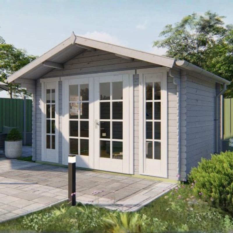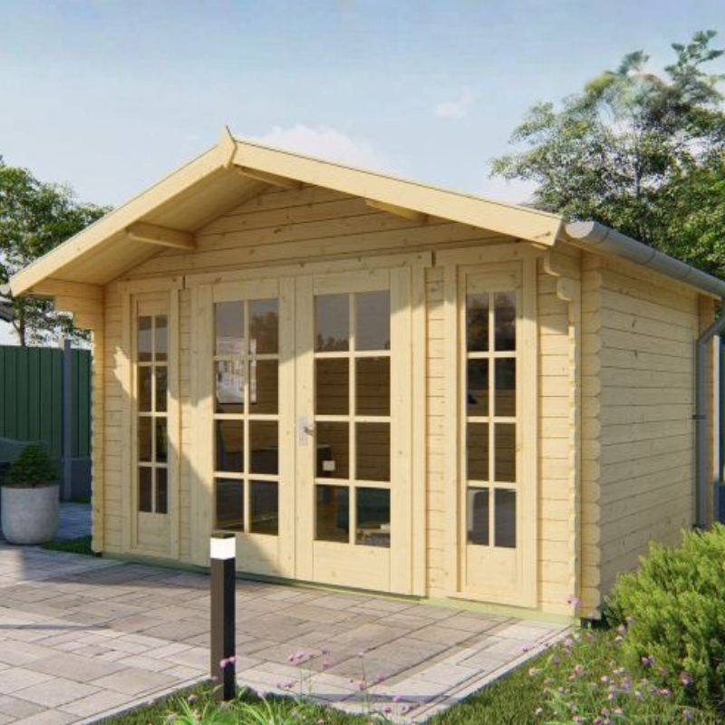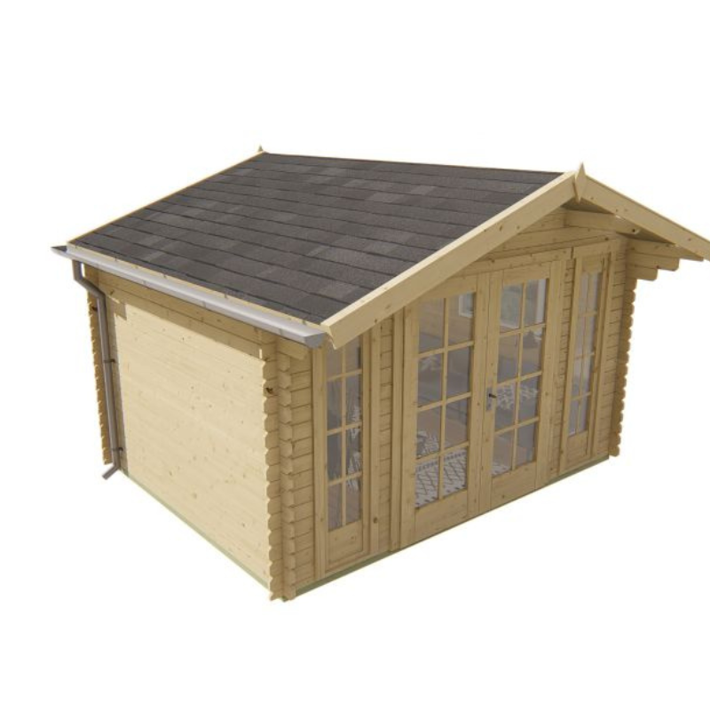 Deze blokhut met zadeldak is gemaakt van onbehandeld vuren en kun je middels de opties hieronder naar eigen wens samenstellen.