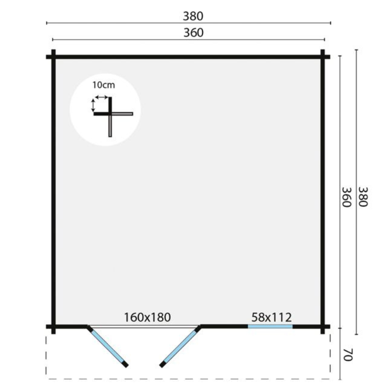 Afmeting 380×380+70cm