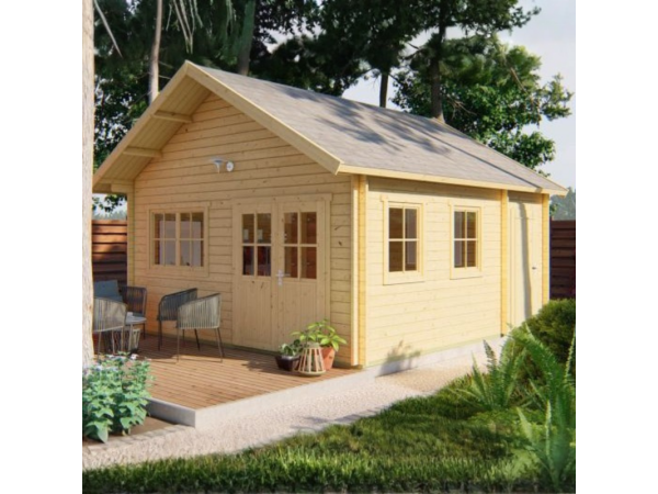 Deze zijn in verschillende afmetingen te krijgen, met dubbele deur of enkele deur of een raam voor meer daglicht in de blokhut. Je kunt er ook voor kiezen om een luifel aan de voorzijde te nemen.